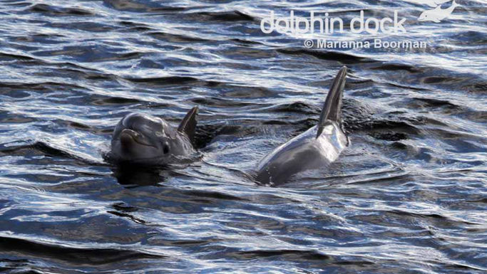 Calves can take a few months to learn to swim properly and will often lift their whole head out of the water each time they take a breath. They spend a lot more time on the surface and are not as quick as the older dolphins; it is therefore extremely important that people using watercrafts keep an eye out and do not approach them.